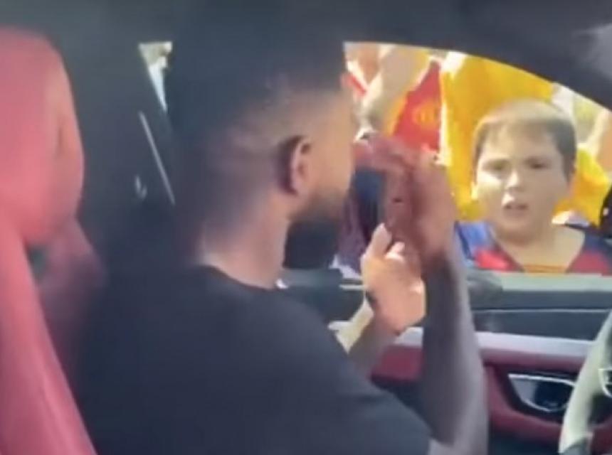 U trenutku dok je Umtiti, koji inače nije previše omiljen na Kamp Nou, davao autogram navijaču kroz desni prozor svog Ferrarija, na drugoj strani jedan dječak je kucao na prozor, a potom je Francuz pobijesnio, ušao u raspravo prvo sa samim sobom, a onda i s dječakom kojem je gestikulirao rukama kroz zatvoreni porozor, i zapitao se "zašto mu diraju autobmobil?".