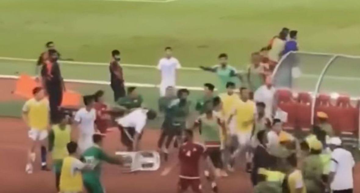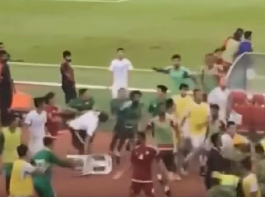 Sve je krenulo nakon jednog starta igrača Ujedinjenih Arapskih Emirata na protivničkog nogometaša i nakon toga uslijedio je haos na terenu među igračima oba tima.