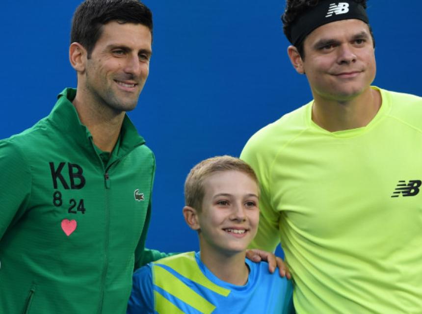 Uoči početka četvrtfinalnog meča na Australian Openu protiv Miloša Raonića, Đoković je izašao u trenerci na kojoj su bili ispisani inicijali jednog od najboljih košarkaša svih vremena, te brojevi 8 i 24 i srce,prenosi avaz.ba.