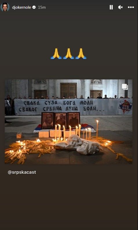 - Svaka suza Boga moli, svakog Srbina duša boli - piše na fotografiji koju je Đoković podijelio, uz emotikon molitve.