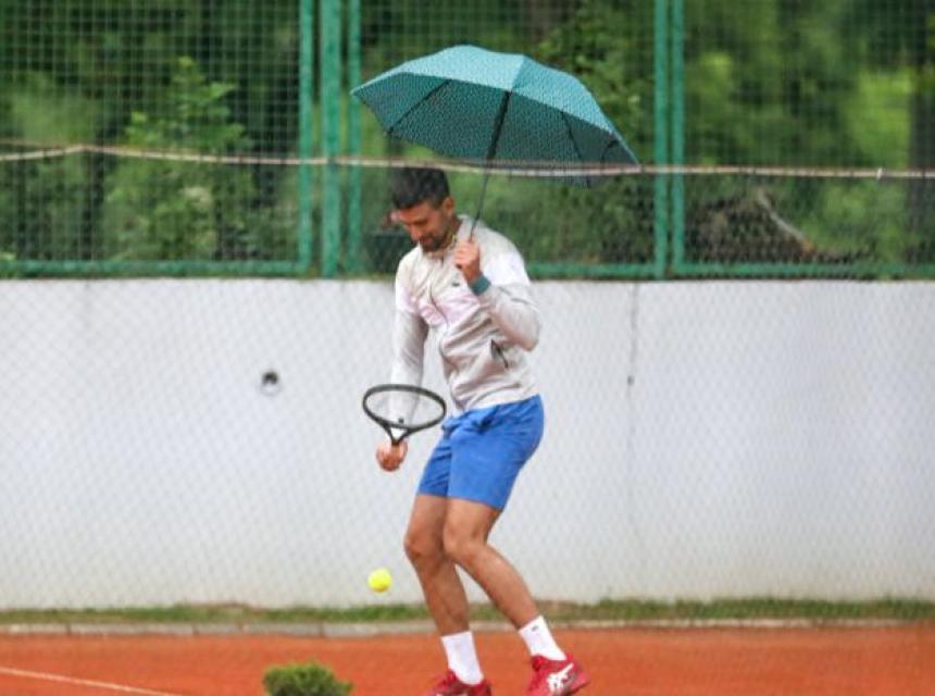 U trenutku kada je završavao svoj prvi trening po povratku u Srbiju, Đokovića je sa terena ispratila ozbiljna kiša koja je počela da pada u Beogradu.
