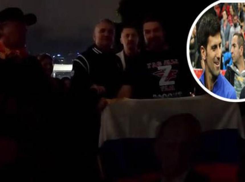 Đoković mlađi briljira na terenu, a sada je u centar pažnje došao njegov otac Srđan. On je snimljen kako kako pozira sa navijačima dok mašu ruskim i proruskim zastavama.