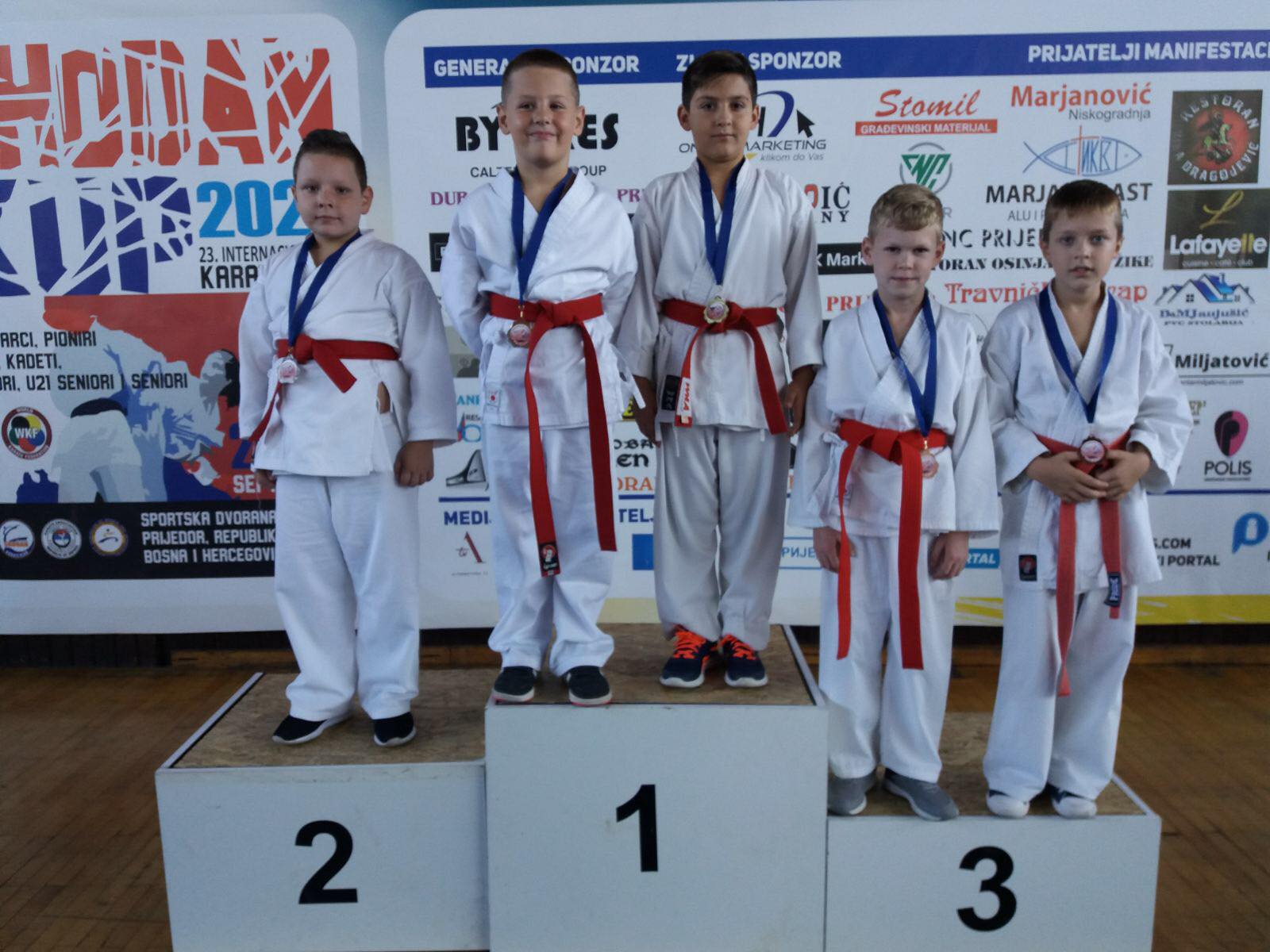 Prvo mjesto u katama i zlatne medalje su osvojili: Mujakić Benjamin i Toromanović Emir.