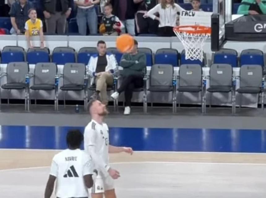 Musa se neko vrijeme zabavljao sa saigračem ispred koša, kontrolisali su loptu i nogom, a onda je sjajnim udarcem glavom loptu probacio kroz koš.