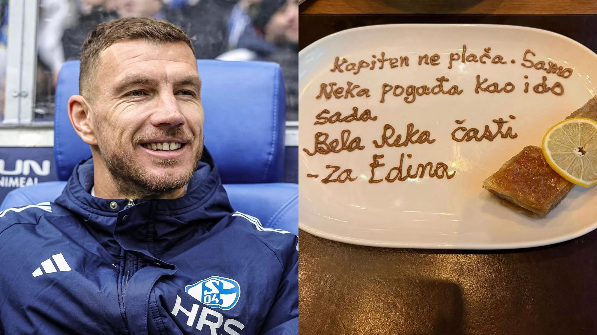 "Kapiten ne plaća. Samo neka pogađa kao i do sada", poruka je koju je dobio Džeko na tanjiru, a Edin je bio oduševljen onim što je vidio, te je fotografiju tanjira podijelio na svoj story.