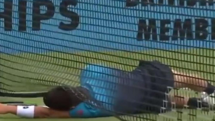 Kako bi stigao skraćenu loptu Bugarina, naš teniser je proklizao i nije se mogao zaustaviti ispred mreže.