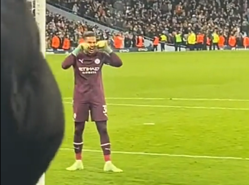 Ederson, golman Cityja, više se zabavljao provociranjem gostujućih navijača.