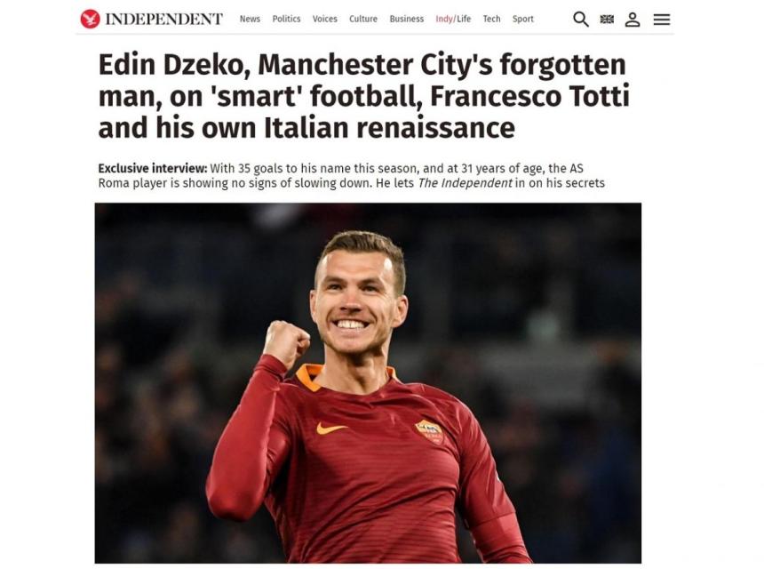 Edin Džeko, kapiten fudbalske reprezentacije Bosne i Hercegovine i napadač Rome u intervjuu za britanski Independent kazao je da ne može trčati kao nekada, ali da je zato mnogo "pametniji".
