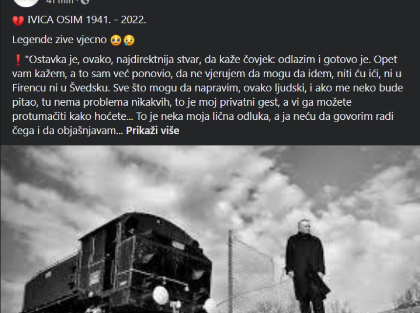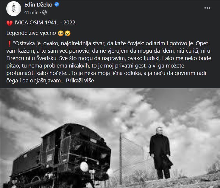 U 81. godini preminuo je Ivica Osim. Ova vijest pogodila je nogometni svijet. Nedugo nakon objave, oglasio se i kapiten bh. reprezentacije i napadač Intera Edin Džeko.