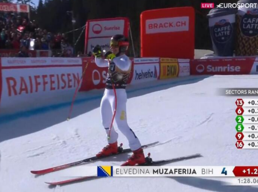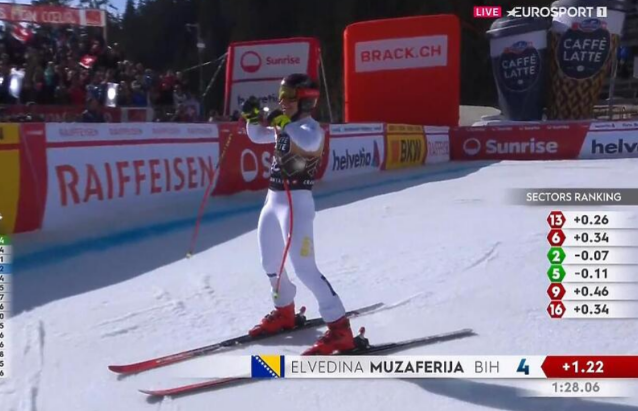Muzaferija je danas prvi put u karijeri utrku počela među 30 najboljih skijašica i sa startnim brojem 28 je ostvarila vrijeme 1:28.06 i zauzela fenomenalno četvrto mjesto!