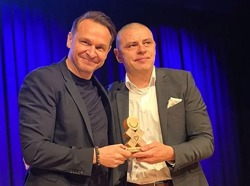 Bh. glumac Enis Bešlagić sinoć je sa svojom predstavom "Da sam ja neko" gostovao u švicarskom Baselu, a nagradu "Enisov najsmijeh" dodijelio je bivšem nogometnom reprezentativacu BiH Marku Topiću.