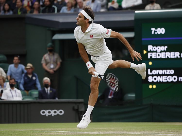 Švajcarski teniser Rodžer Federer plasirao se u četvrtfinale Vimbldona pošto je savladao Italijana Sonega u tri seta 7:5, 6:4, 6:2.
