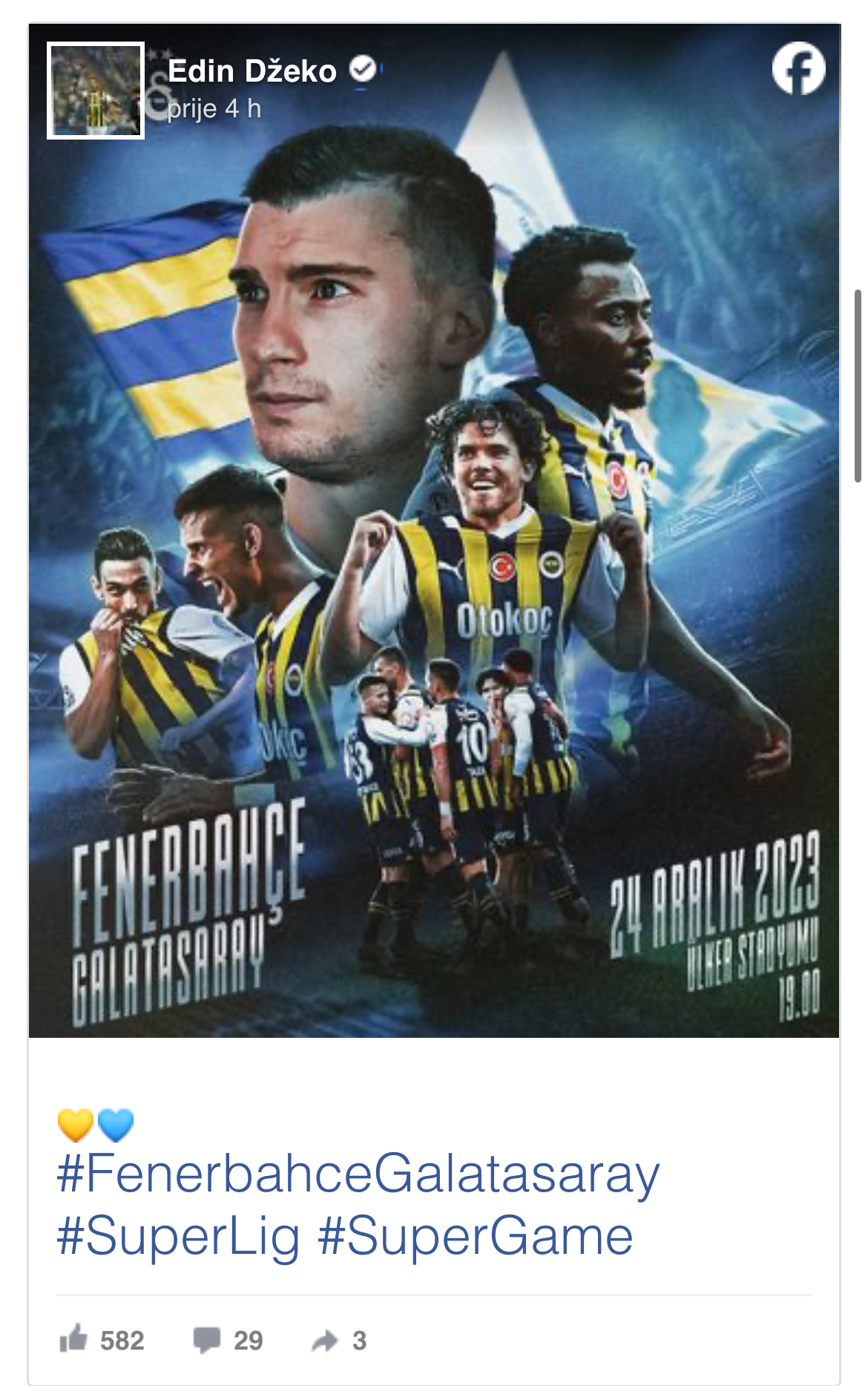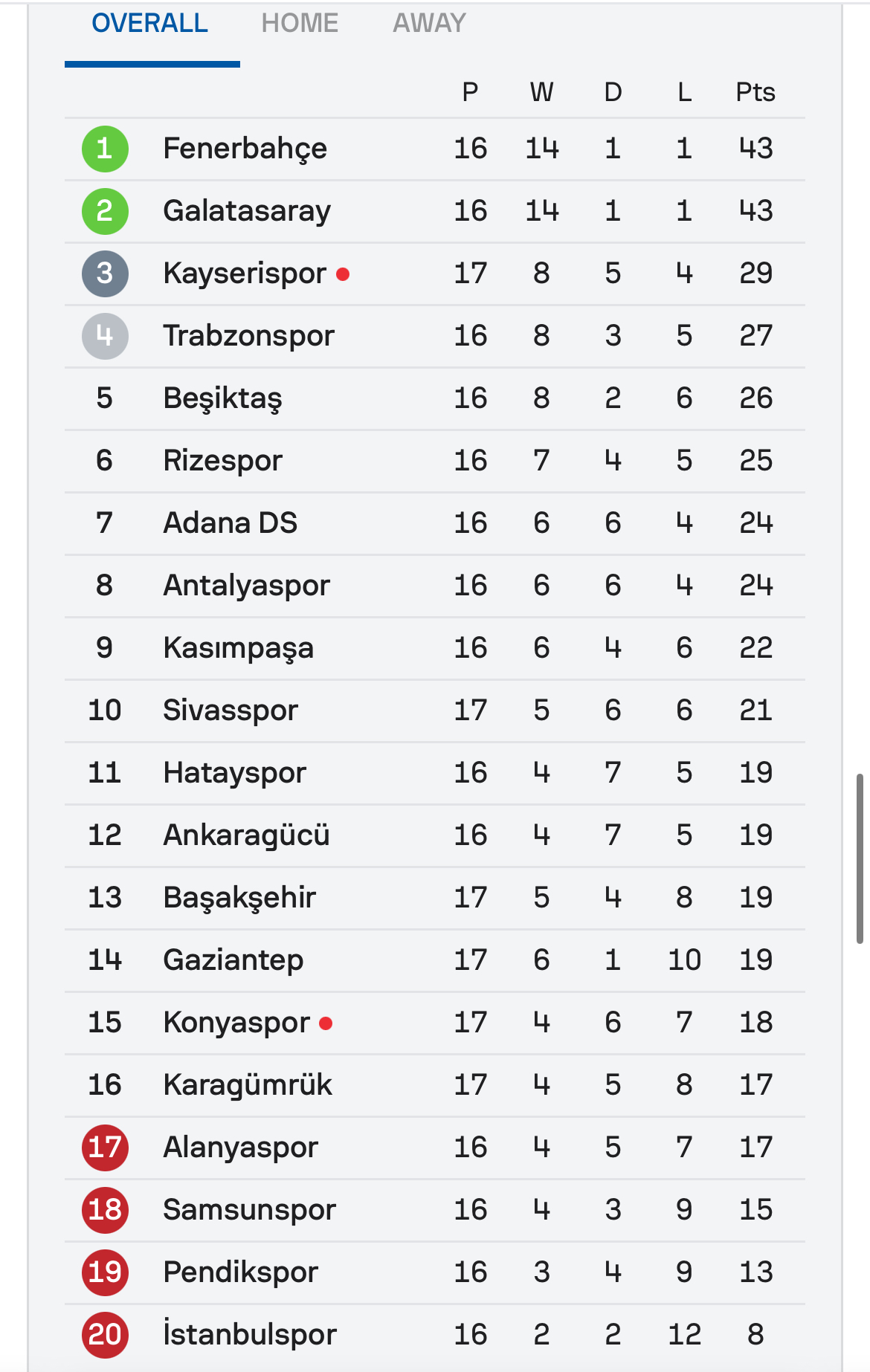 Oba tima trenutno imaju po 43 boda, s tim da Fenerbahče ima nešto bolju gol- razliku i prvi je na tabeli.