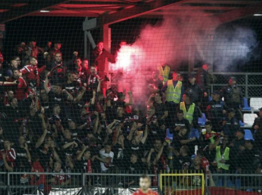 Na toj utakmici bilo je oko 300 navijača iz Albanije, koji su se skoro tokom cijele utakmice nedolično ponašali, uz brojna nacionalistička skandiranja, kao što je "UČK, UČK", "Velika Albanija", "Ilirida" i upotrebu zapaljivih predmeta, što je izazvalo kašnjenje početka poluvremena.