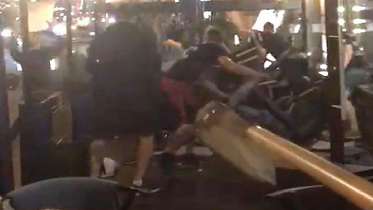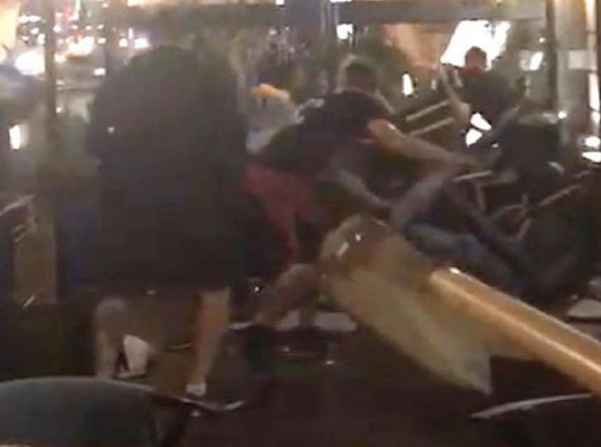 Navijači iz Engleske su se morali braniti stolicama i stolovima, a neki od njih su na kraju prošli sa povredama i posjekotinama što je vjerovatno i očekivano nakon ovakvog incidenta.