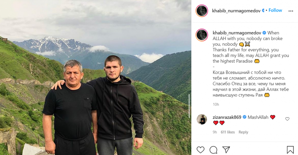 - Kad je Allah s tobom, niko te ne može slomiti, niko. Hvala ti oče za sve, naučio si me svemu u životu, neka te Allah nagradi najljepšim mjestom u džennetu, napisao je Khabib.