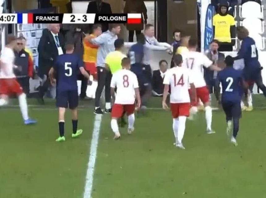 Mladi nogometaš St. Etiennea Darnell Bile u 77. minuti napravio je katastrofalan potez. Udario je protivnika glavom i zaradio isključenje. Prvo je žestoko startovao nad rivalom, a onda je u svađi udario Poljaka glavom.