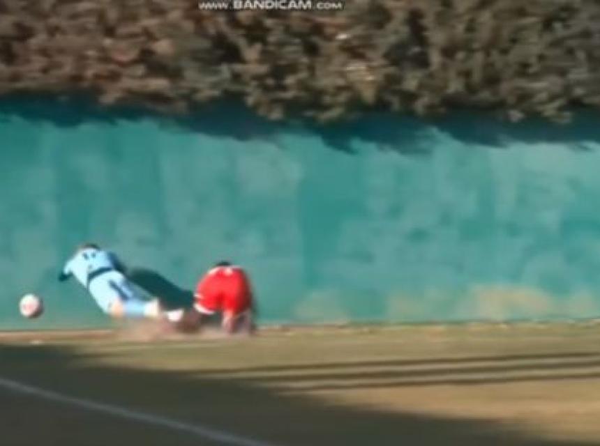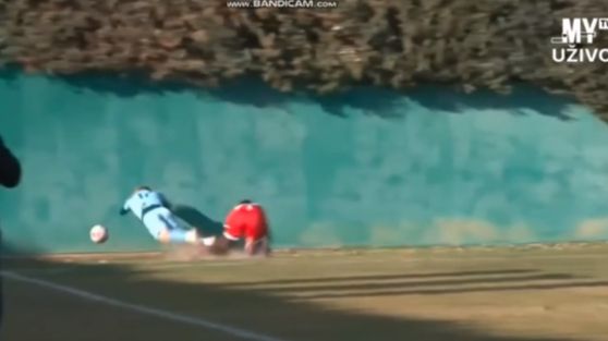 Drljo je nakon neopreznog starta protivničkog fudbalera doživio nezgodan sudar sa zidom koji se nalazi uz sami stadion.