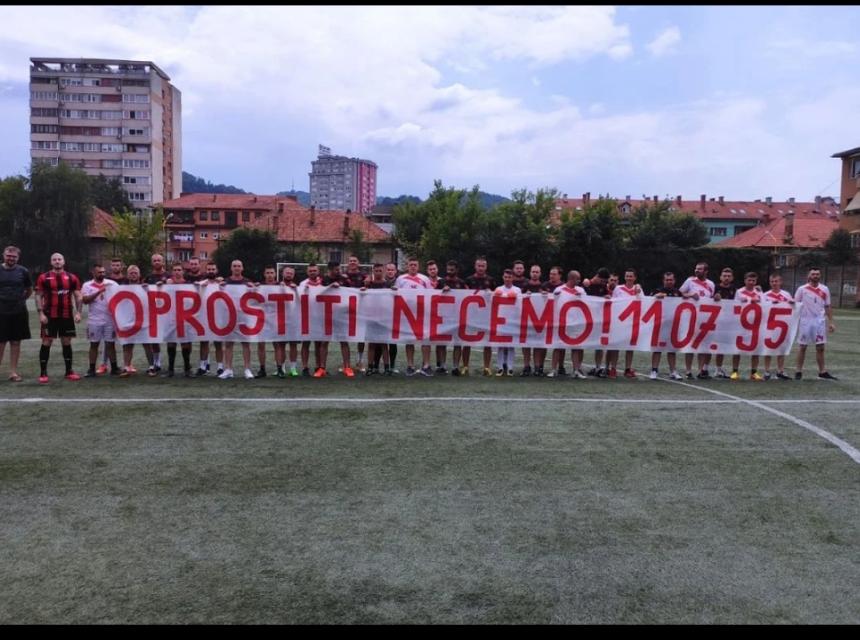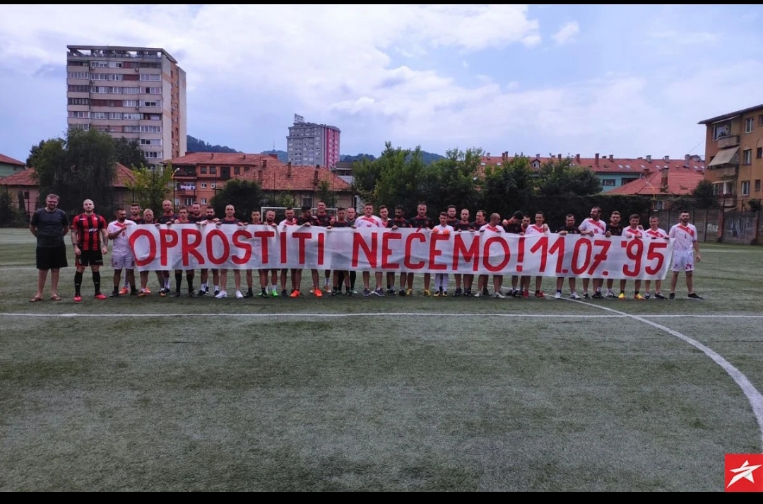 Prije egizbicionog meča navijači oba kluba su poslali snažnu parolu kako se neće oprostiti genocid u Srebrenici kada je Vojska RS-a ubila preko 8000 Bošnjaka.