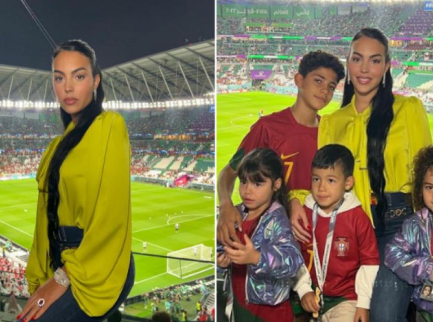 Georgina se na Instagramu pohvalila da je s djecom došla gledati Kristijana Ronalda (Cristiano) na prvenstvu. Jučer su s tribina pratili utakmicu Portugala i Južne Koreje u kojoj je portugalska reprezentacija izgubila rezultatom 2:1.