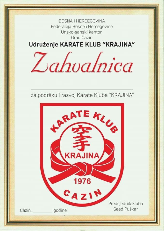 Češtitamo našim roditeljima i članovima obilježavanje dana kluba 01.03.1976. godine i pozivamo sve zainteresirane da nam se pridruže.”- stoji u poruci karate kluba Krajina Cazin.