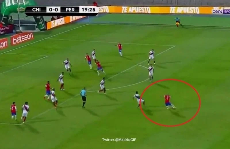 Čile u vodstvo stiže u 19. minuti, a sjajan pogodak za vodstvo ove reprezentacije postigao je Vidal. Meneses mu je dodao loptu s lijeve strane, on je primio na nekih 30 metara od gola Perua, namjestio se i onda razornim udarcem pogodio za 1:0.