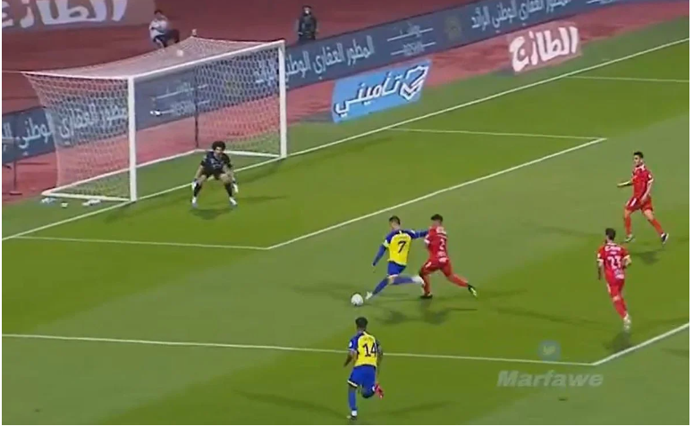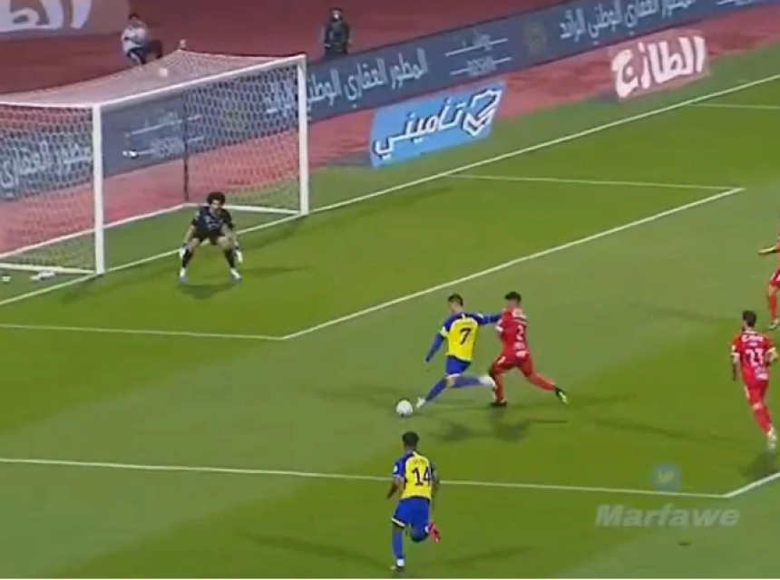 Ghareeb je loptu dodao do Ronalda koji je bio u zaista teškoj poziciji, ali je odlučio da šutira i pokuša postići pogodak.