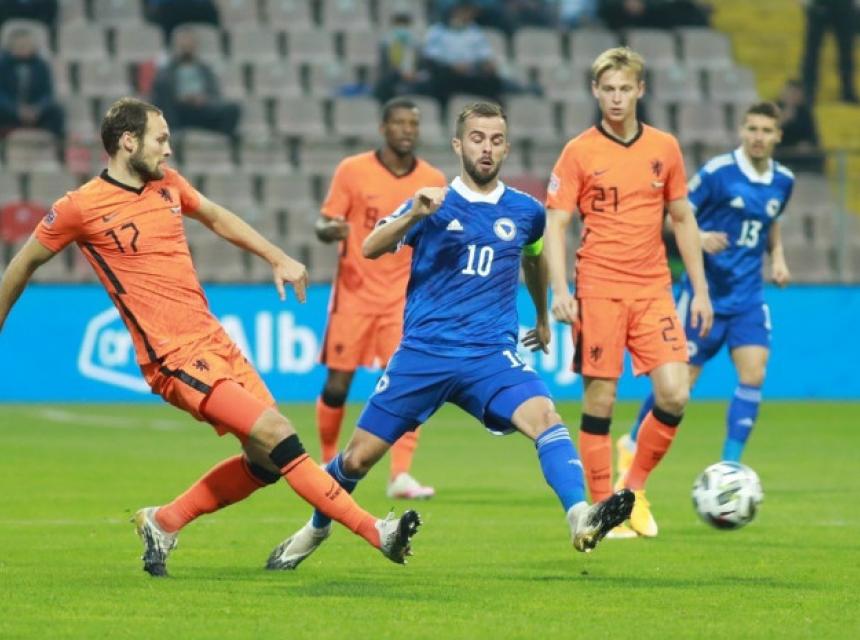 - U kombinacijama u blizini kaznenog prostora BiH nisu se dobro snalazili. Tu je falio De Paj koji je u malom prostoru mnogo bolji nego Luk de Jong. Namjera De Bura je bila da završnica ide centaršutevima s bokova od Demfrisa i Malena - desno, te Promesa i Blinda lijevo, Oni su uputili mnogo centaršuteva, ali nisu bili efektivni. Zbog toga je i igrao Luk de Jong. Također, konstatovali su da je i BiH igrala dobro u posjedu lopte, te da je mogla postići pogodak. Posebno su istakli onu šansu Miralema Pjanića na proigravanje Edina Džeke. Kako kažu, da je i Bosna pobijedila, bilo bi to zasluženo, te da je igra našeg tima oslabila izlaskom Pjanića, prenosi Ćurić.