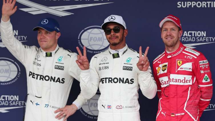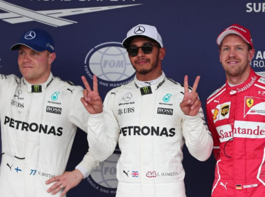 Botas, međutim, neće krenuti s drugog mjesta, pošto je dobio kaznu od pet pozicija na plasman zbog promjene mjenjača. S drugog mjesta startovt aće vozač Ferarija Sebastijan Fetel (Sebastian Vettel), koji je imao zaostatak od 0,472 sekunde za Hamiltonom. Treći je Danijel Rikardo (Daniel Ricciardo) iz Red Bula sa 1:28,306, a četvrti je njegov klupski kolega Maks Verstapen (Max Vertstappen) sa 1:28,332.