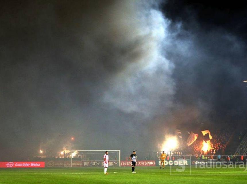 Desetak minuta od početka drugog poluvremena, došlo je do tuče između navijača ”crveno-belih” i partizanovih. Navijači su razbijali stolice, bacali baklje, zbog čega je zapadna tribina na stadionu "Rajko Mitić" u Beogradu evakuisana, a fizički su napadnuti i pripadnici policije.