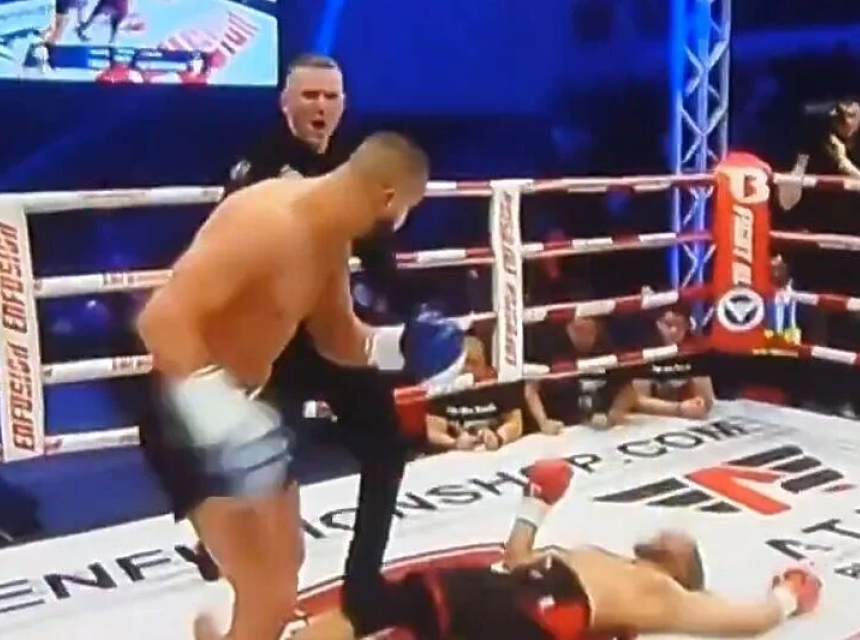 Munjevito ga je pogodio desnim krošeom, a zatim dokrajčio kombinacijom prednjeg dirketa i desnog krošea, nakon čega Marokanac nije mogao nastaviti meč.