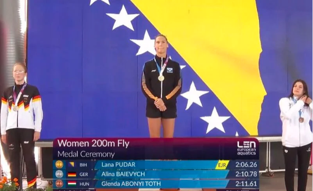 Nakon utrke održana je svečana ceremonija dodjele medalja, kao i intorniranje himne Bosne i Hercegovine koju je publika pozdravila aplauzom kao i prije nekoliko dana kada je Lana stigla do zlata na 100 metara delfin, a na tribinama su se mogle vidjeti i zastave BiH.