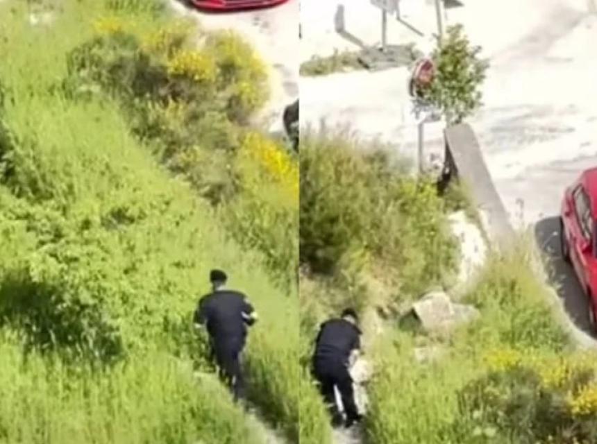 Tako se na društvenim mrežama pojavio snimak jednog navijača Hajduka koji s lisicama na rukama bježi policajcu niz brdo i to mu polazi za rukom.
