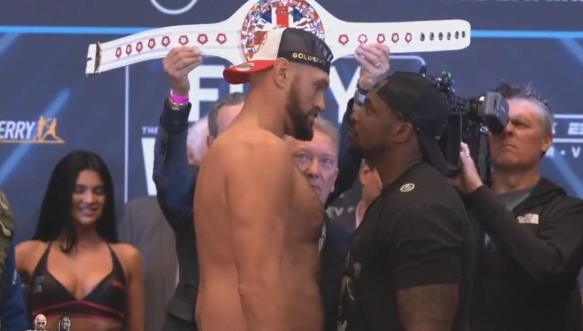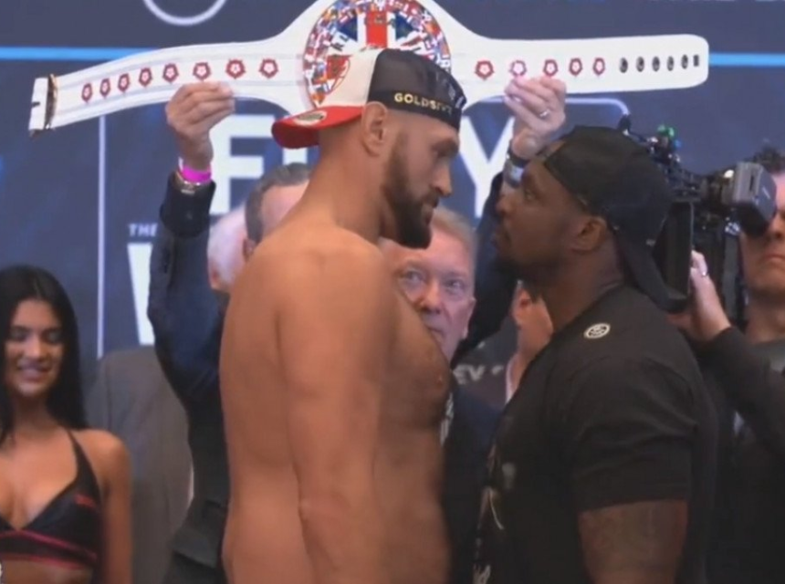 Danas je obavljeno službeno vaganje i posljednje sučeljevanje pred meč. Vaga kod Tysona Furyja pokazala je 120.1 kilogram i nešto više od pet kilograma je teži od Whytea. Izazivač je težak 114.8 kilograma.