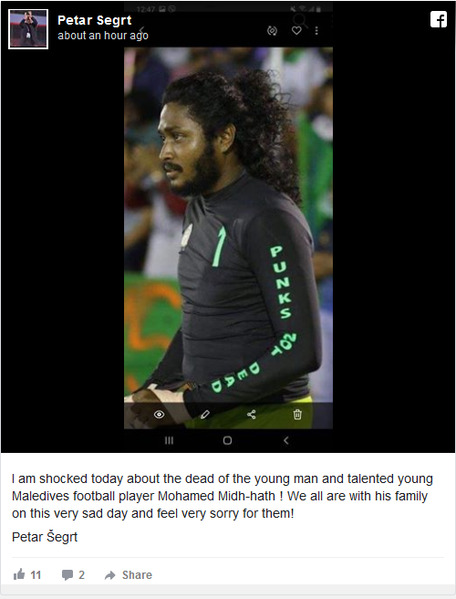Hrvatski trener Petar Šegrt se oglasio na svom Facebook profilu gdje je potvrdio smrt mladog fudbalera Mohameda Midh-hatha. Midh-hath je mladi fudbaler sa Maldiva čiji je selektor upravo Petar Šegrt.