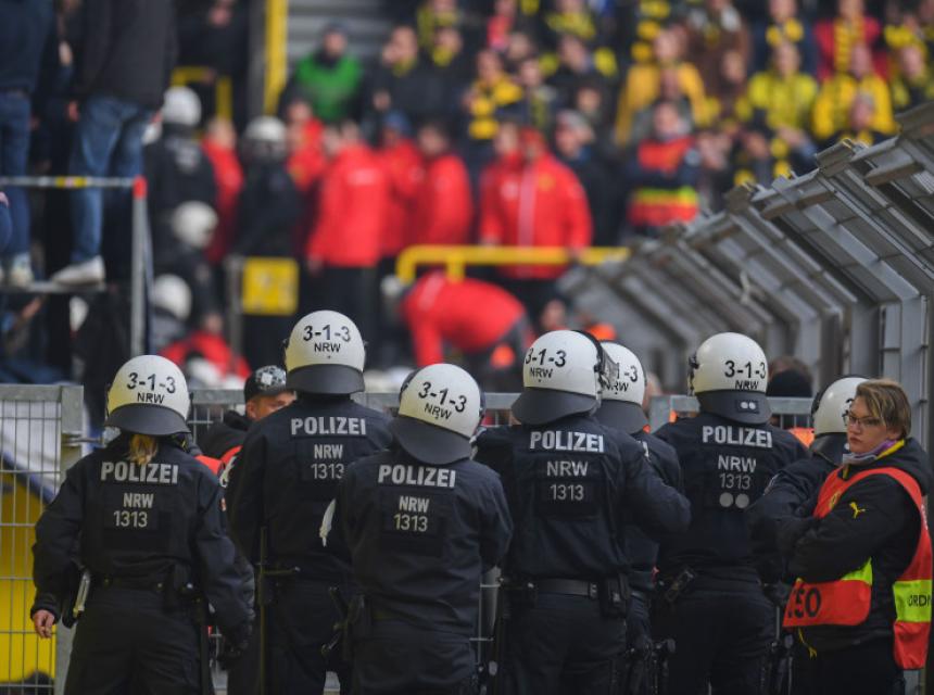 Policija je odmah reagirala i oduzela je transparent gostujućim navijačima, što je izazvalo žestoku reakciju huligana iz Berlina, koji su preskočili ogradu, stali ispred tribine i uzeli motke duge tri metra predviđene za navijačke zastave i njima su počeli udarati policajce.