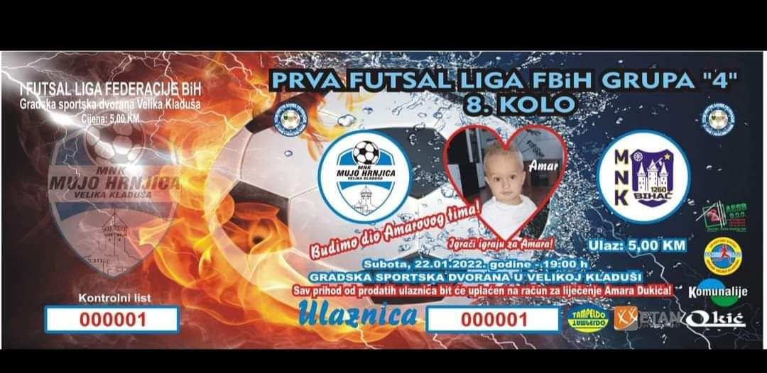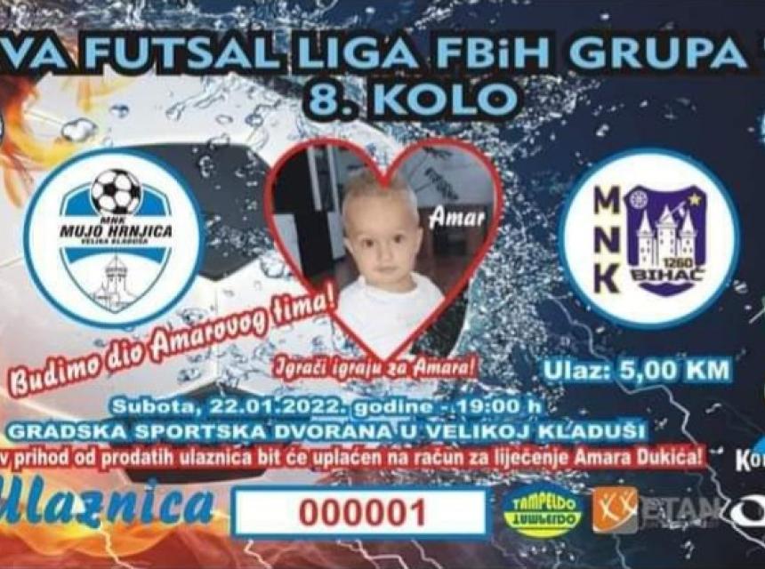 Ulaznice se prodaju po cijeni od 5 KM, a sav prihod ide za liječenje Amara Dukića, djeteta igrača MNK "Mujo Hrnjica" Velika Kladuša Aladina Dukića.
