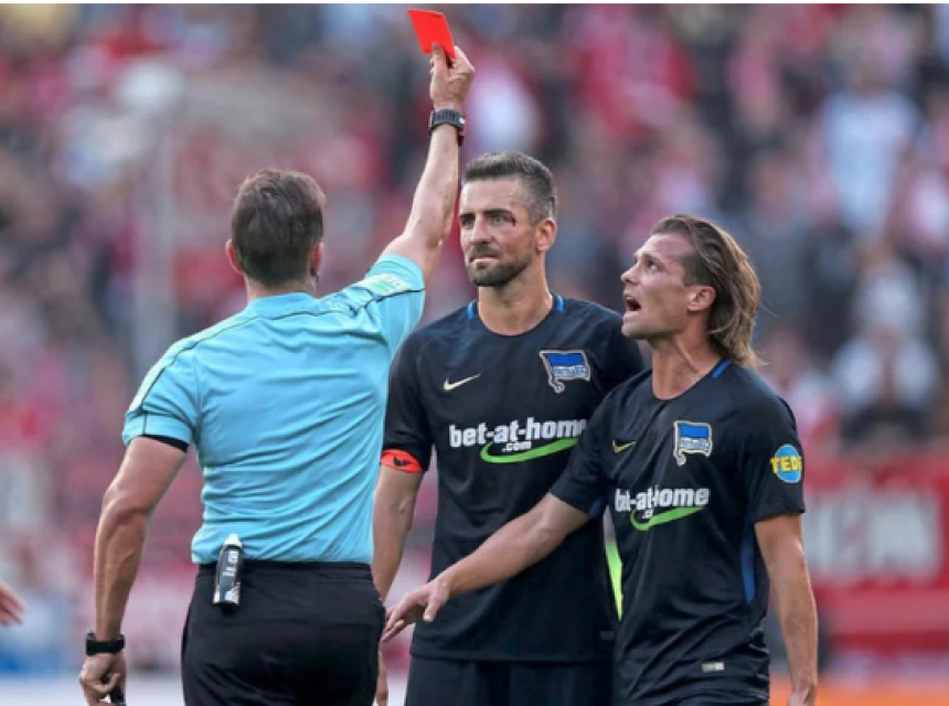 Kapiten Herthe je u finišu susreta dobio udarac u arkadu zbog kojeg mu je krv potekla, a arbitar Tobias Stieler mu je iz čista mira pokazao direktan crveni karton.