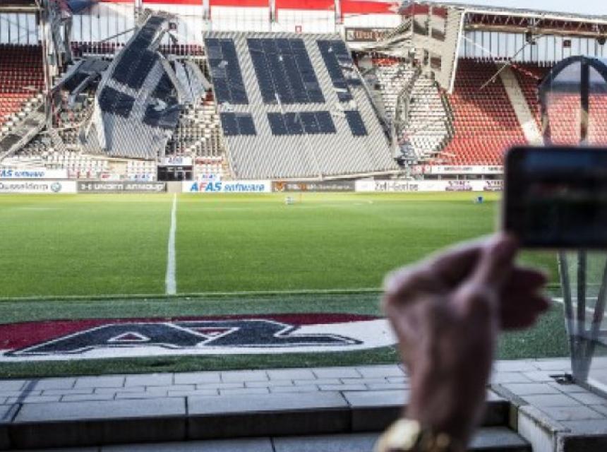Snažan vjetar uzrokovao je urušavanje dijela krova na nogometnom stadionu holandskog kluba AZ Alkmar, ali, nasreću, niko nije stradao jer su tribine bile gotovo prazne.