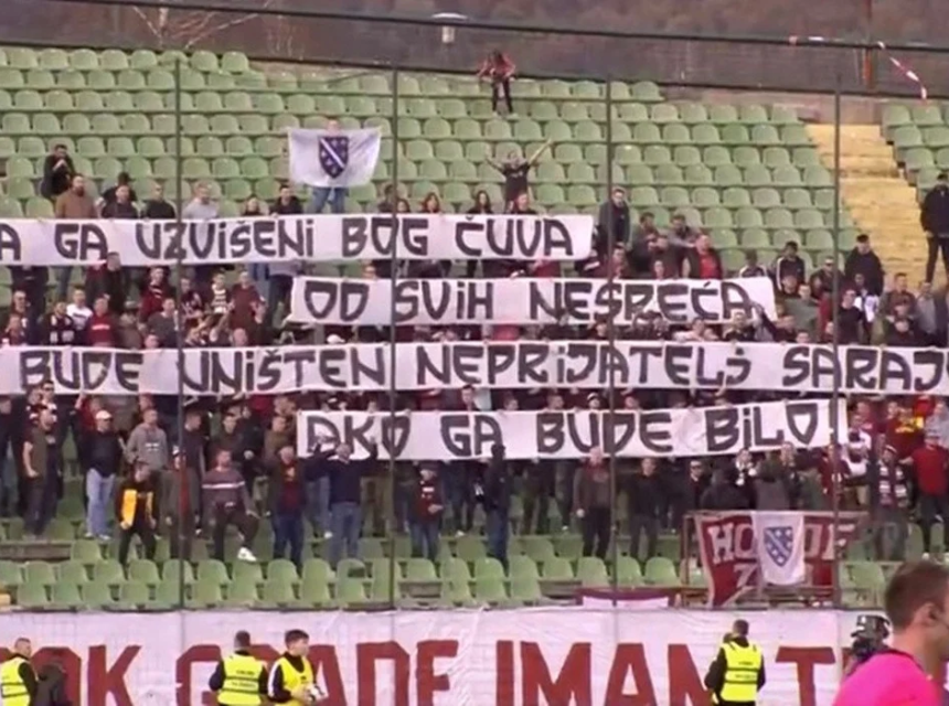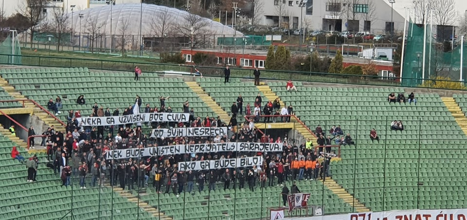 Sarajevo vodi s 1:0 pogotkom Avramovskog još iz prvog dijela, a najzanimljivije do sada u drugom je transparent domaćih navijača.