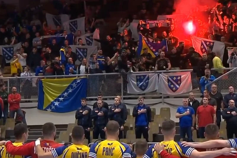 Kako je protivnik i više nego snažan, našim predstavnicima bit će potrebna podrška tokom cijelog susreta. A sve je krenulo tokom intoniranja himni obje države.