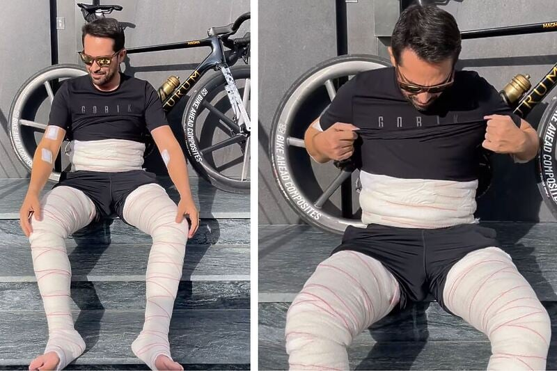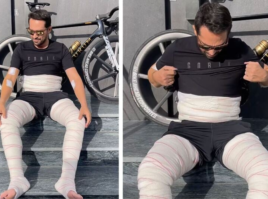 Contador je već dan nakon operacije pokazao kako izgledaju zavoji na njegovom tijelu. Imao je flastere po rukama, a noge i torzo su mu bili potpuno zavijeni u zavoje.
