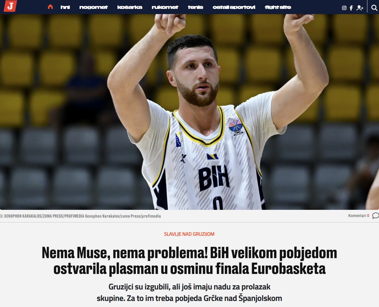 Košarkaška reprezentacija Bosne i Hercegovine se plasirala u osminu finala EuroBasketa.