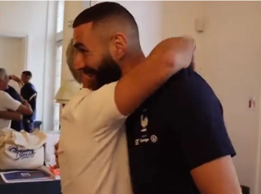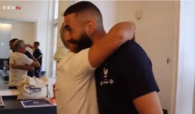 Na okupljanju francuske reprezentacije Benzema se redom pozdravljao sa igračima i stručnim štabom, svi su mu čestitali na osvojenoj tituli Lige prvaka, a srdačan je bio i njegov susret sa Mbappeom.