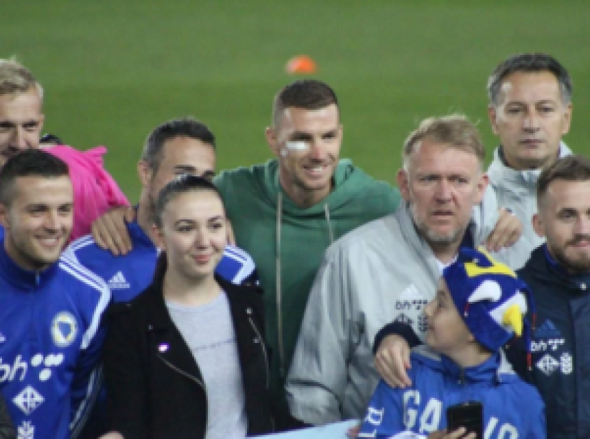 Džeko je zadobio prelom jagodičke kosti, a nakon operacije utvrđeno je da će van terena biti najmanje tri sedmice. No, to nije spriječilo našeg kapitena da doputuje u BiH, te je večeras iznenadio svoje saigrače iz reprezentacije na treningu.