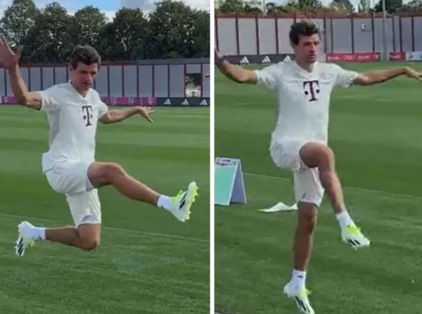 Dan prije ove utakmice, "osvanuo" je video s treninga Bayerna na kojem se može vidjeti Thomas Muller kako radi neke smiješne poteze.