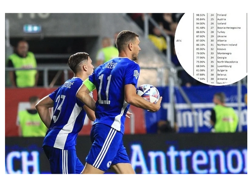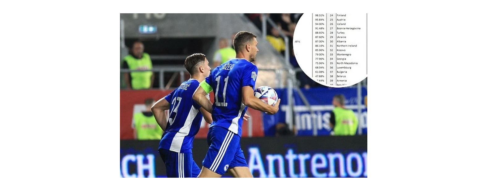 Reprezentacija Bosne i Hercegovine ima 28 posto šansi da se direktno plasira na Evropsko prvenstvo 2024. godine, rezultat je računice statističara iz "We Global Football".