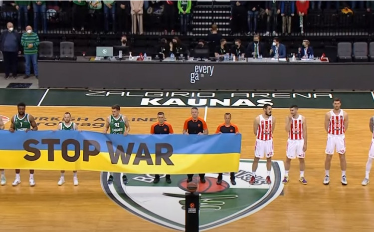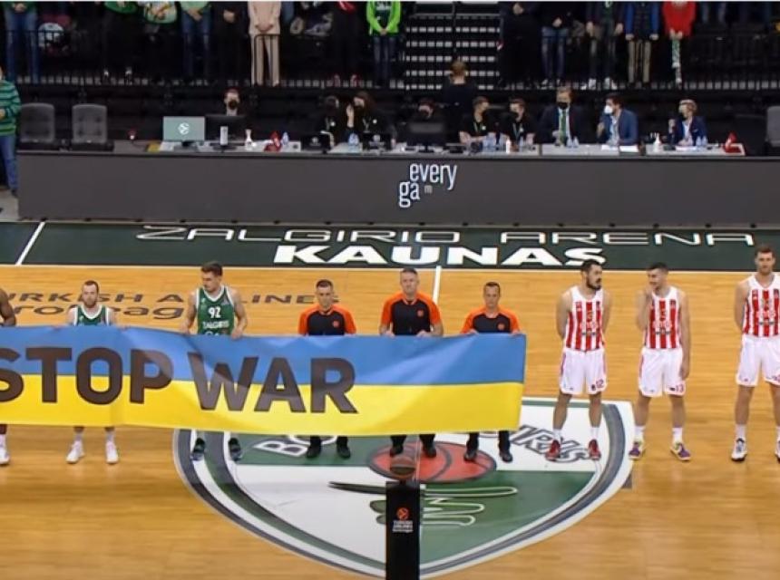 Košarkaši Crvene zvezde su uoči početka euroligaške utakmice protiv Žalgirisa u Kaunasu odbili držati transparent u bojama ukrajinske zastave na kojem je pisalo "Zaustavite rat".
