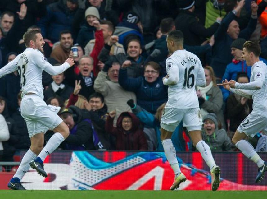 Fudbaleri Swansea iznenadili su danas Liverpool na otvaranju 22. kola Premiershipa pobijedivši ih 3:2 na Anfieldu.