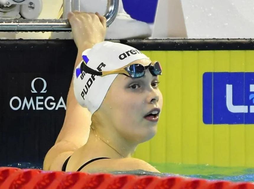 Pudar može biti zadovoljna nastupom u Otopeniju s obzirom da je prekjučer osvojila bronzu u svojoj omiljenoj disciplini 200 metara delfin s vremenom 2:04.55, što je ujedno i novi evropski juniorski rekord.